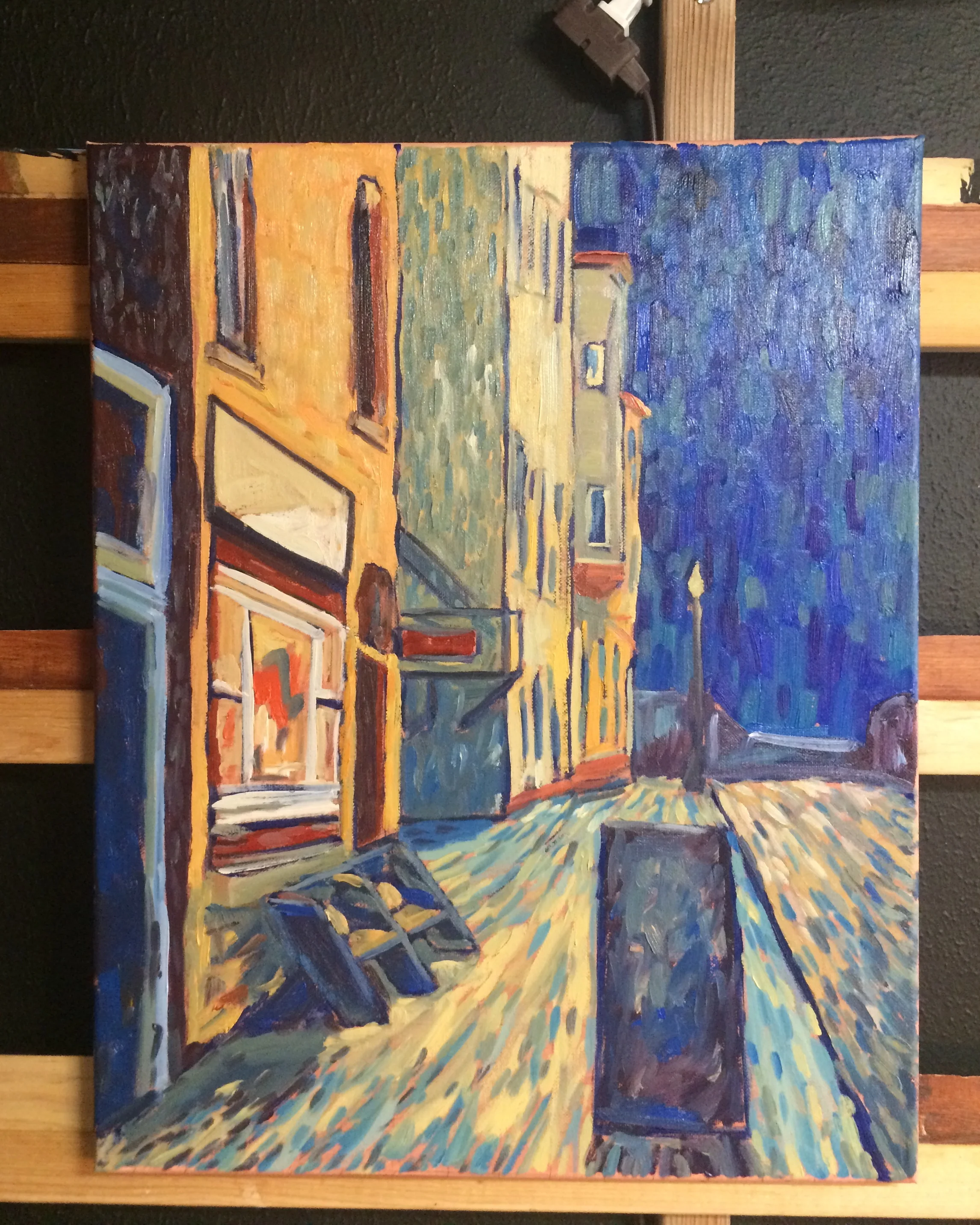 Here’s what I’m currently working on. This piece features “The Driftless Cafe” in Viroqua. A superb cafe that specializes in farm to table food.